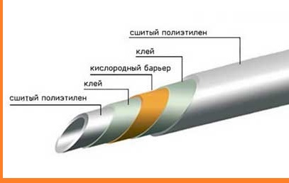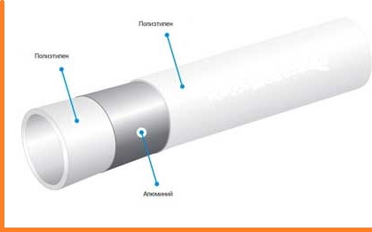 Название материала отражает его структуру. Он состоит из слоев полиэтилена, алюминия и клеящего слоя. Трубы из этого материала используются с латунными фитингами.
